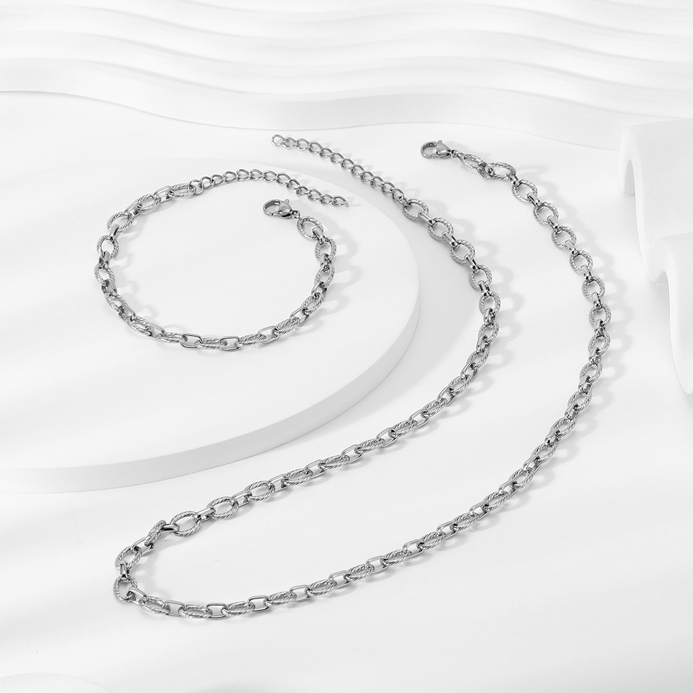A: We sell this product exclusively as a complete set; individual pieces are not available for purchase. The stainless steel O-ring necklace set includes 1 necklace and 1 bracelet. This is a bundled SKU designed specifically for wholesale customers to facilitate bulk purchasing and set sales, thereby increasing average order value and profit margins.